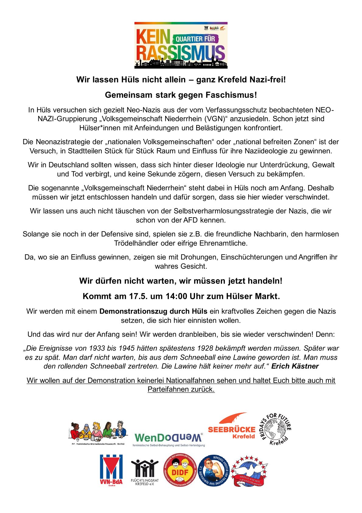 Demo Hüls 17.05.2025 Wir lassen Hüls nicht allein!