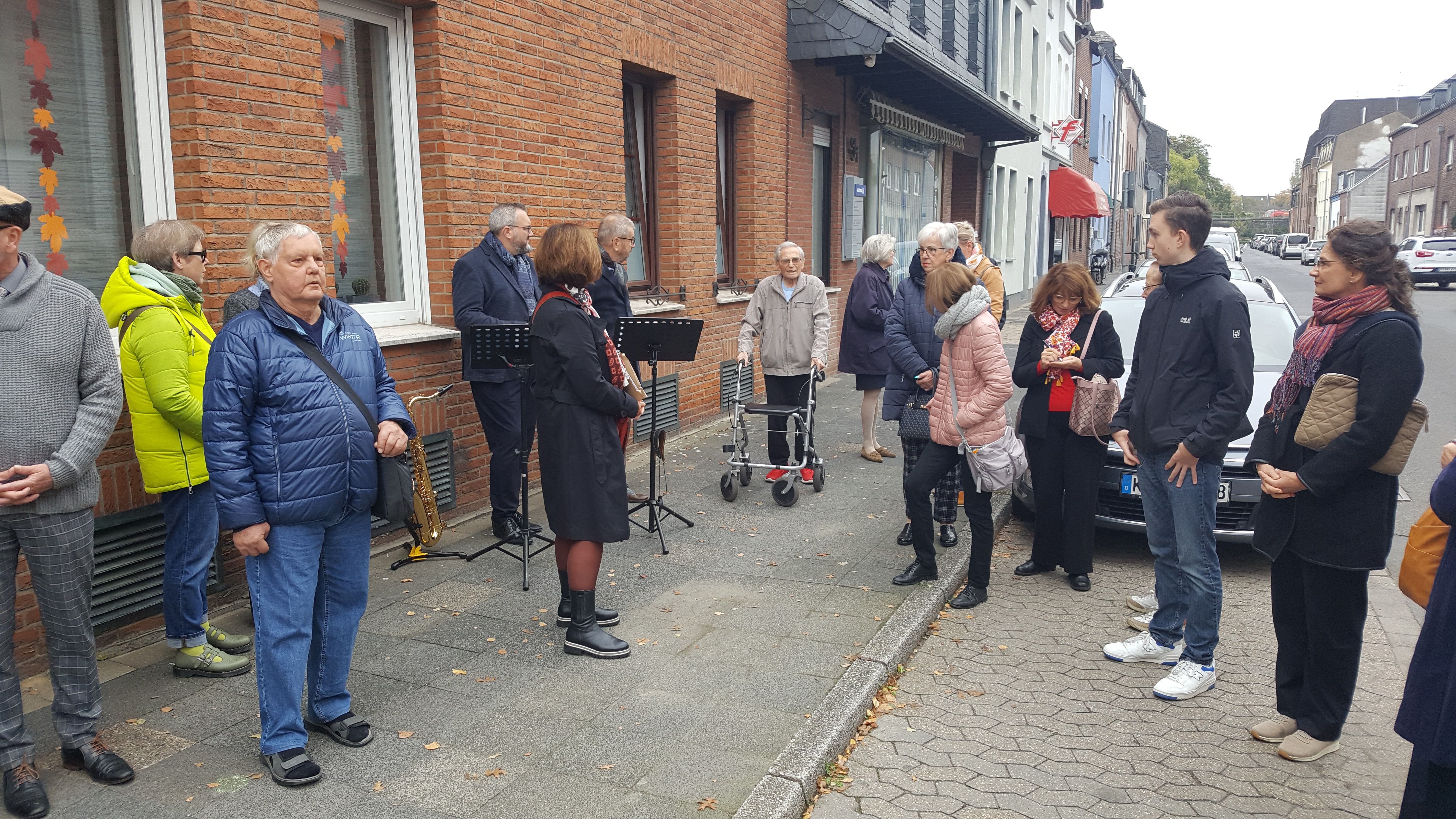 Die Begleitung durch ein Saxophon -Duo und die thematische Herleitung der Stücke von Erich Frost durch Christine Willsch hat diesen historischen Rundgang eine ganz besondere Note verliehen. Nach der Gedenkveranstaltung an den Stolpersteinen haben einige Interessierte noch einen Besuch am Haus von Aurel Billstein an der alten Flur gemacht und einige Anekdoten aus Leben und Wirken von Aurel geteilt…lebendige Geschichte(n).