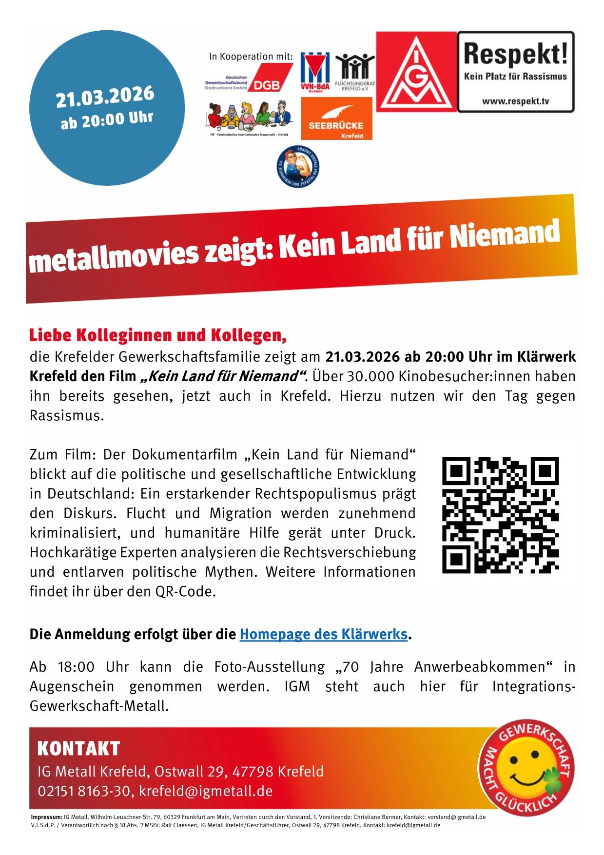 die Krefelder Gewerkschaftsfamilie zeigt am 21.03.2026 ab 20:00 Uhr im Klärwerk